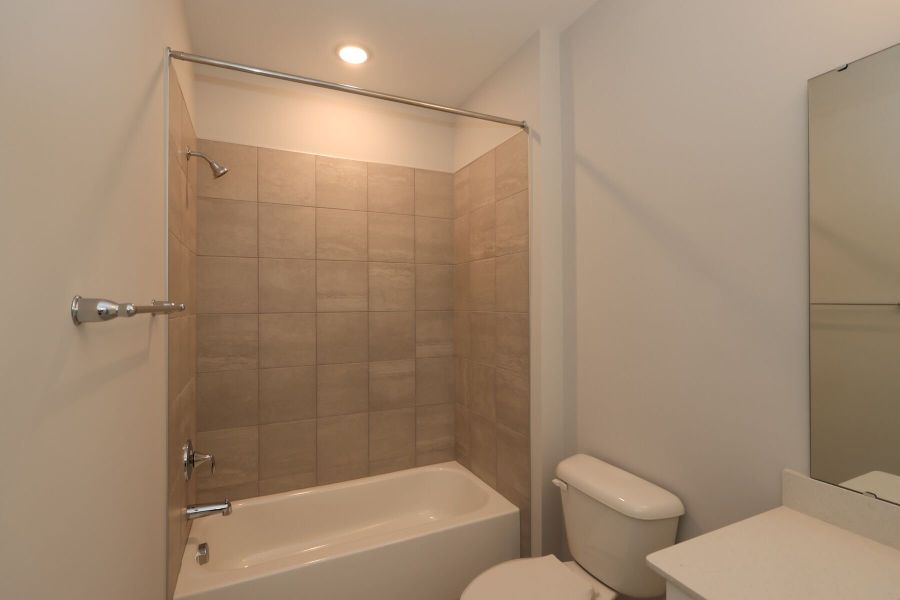 On the third level, you’ll find 3 bedrooms, including your expansive owner’s suite. Located at the back of the home, it features a walk-in closet and a luxurious bathroom with a dual-sink vanity, a large tiled shower with a seat, ample storage in the linen cabinet, and a separate water closet.