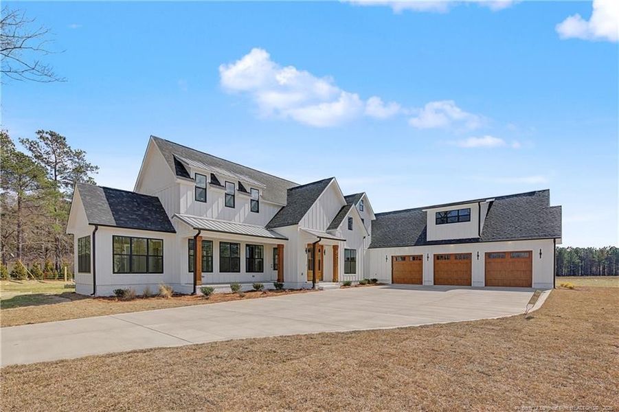 Stunning executive four bedroom home on 1.23 acres in Gray’s Creek! Welcome to your dream home, a perfect blend of elegance, space, and modern comfort! Nestled in a quiet cul-de-sac within an exclusive eight-lot subdivision, this magnificent four bedroom, three and half bath executive residence sits on 1.23 acres in one of Gray’s Creek’s most desirable upcoming communities. From the moment you arrive, the curb appeal and inviting covered porches set the tone for the luxury inside. Step into the grand foyer and be greeted by soaring ceilings in the two-story great room, anchored by a cozy double-sided fireplace—ideal for relaxing or entertaining. The open layout flows seamlessly into the formal dining room and a chef-inspired kitchen featuring: a large quartz covered island, bright breakfast area, double ovens, cooktop with vent hood, walk-in pantry with custom wood shelving, and premium finishes throughout. Just off the kitchen, you’ll find a convenient half bath and a spacious downstairs laundry room. Need a quiet retreat? Enjoy the additional flex space at the front of the home with cathedral ceilings, perfect for a home office, playroom, or library. The main-level owner’s suite is a true retreat, offering: spa like en-suite bath with quartz topped double vanities, garden tub & walk-in shower, private water closet, expansive wood shelved walk-in closet, and private access to one of two rear covered porches. Upstairs, discover three generously sized bedrooms, two full bathrooms, a cozy loft, built-in desk/study area, and even a second level laundry space for added convenience. Step outside to enjoy your peaceful, private oasis. Choose between two covered rear porches—one flowing directly from the owner’s suite, and the other off the dining area, ideal for grilling, entertaining, or soaking in the serenity of your spacious backyard. A three car garage provides ample space for vehicles, tools, and toys. Located just minutes from Hwy 87 and I-95, this home offers easy access to Fort Bragg, Fayetteville, and North Carolina’s beautiful beaches. Luxury, privacy, and convenience, this home has it all. Schedule your private tour today!