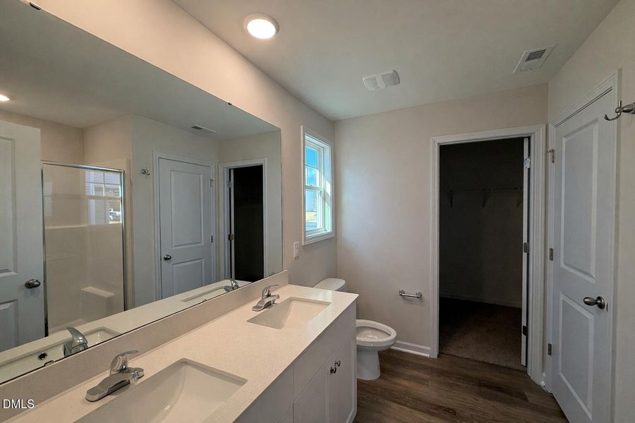 The owner's suite is a peaceful retreat with a private ensuite bath featuring dual vanities and a walk-in shower. Two additional spacious bedrooms offer plenty of flexibility for guests, a home office, or hobbies. You'll also love the laundry room located just off the garage entry, making everyday routines simple and convenient.