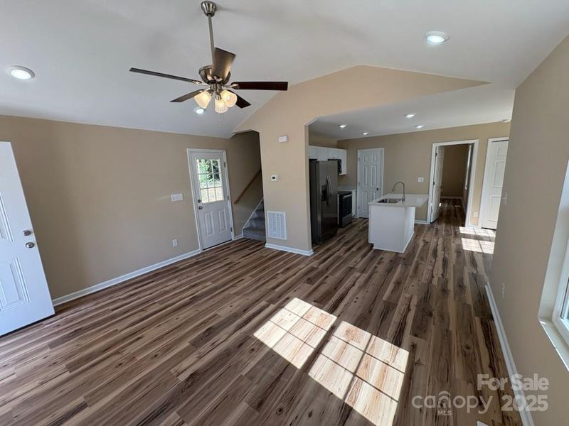 1280 Square Foot Brand New site built 2 story 3BR / 2Bath home just completed in October '2025. Level landscaped corner lot with extra wide concrete driveway and rear patio. Hi-Efficiency HVAC with insulated windows and doors with City water and sewer. Modified Vaulted High Ceiling in Family Room, Granite counter tops in Kitchen and Bathrooms,with Double Door Stainless Refrigerator, Microwave, and Dishwasher included. Walk In closet in Master Bedroom. Upgrade Luxury Vinyl Plank Flooring throughout main level with carpeted stairs to upsatairs carpeted two bedrooms. Upstairs bathroom has Luxury Vinyl Plank flooring also.