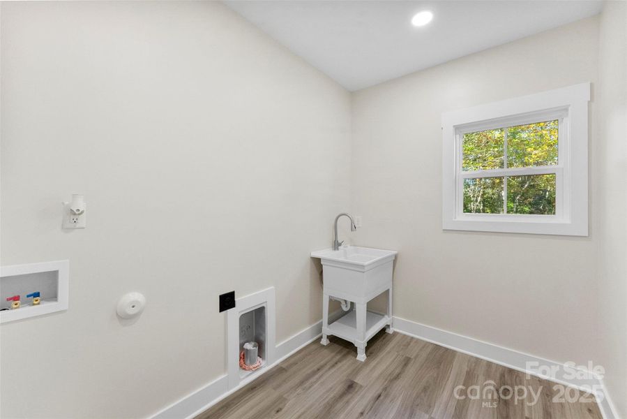 The large laundry room offers ample space for storage, while the oversized walk-in pantry is perfect for all your kitchen essentials. The kitchen itself features rich wood cabinetry, exotic granite countertops, a pot filler above the stove, a stylish tile backsplash, and an impressive 8-foot eat-in island.