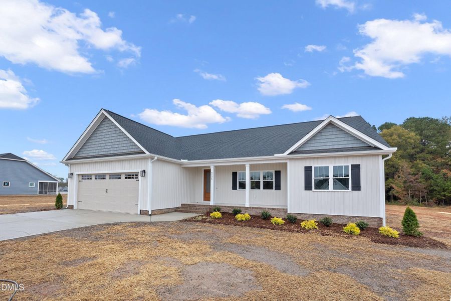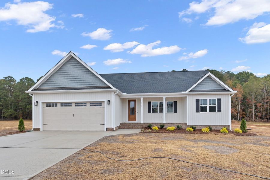 Discover luxury living in this remarkable semi-custom ranch-style home, perfectly situated on a peaceful 0.92-acre lot. From the moment you arrive, the covered front porch and striking 3/4 glass 8-foot door welcome you into a private foyer that opens to an elegant, open-concept layout. This 3-bedroom, 2-bath residence was designed with both style and comfort in mind, offering a seamless blend of modern finishes and thoughtful craftsmanship. The chef's kitchen is a true showstopper, featuring premium soft-close cabinetry, under-cabinet lighting, level 2 quartz countertops, a stylish tile backsplash, an expansive pantry with ¾'' wood shelving, SS apron deep-single-bowl sink, and a 5-burner range with convection bake/broil and built-in air fryer. The spacious living area centers around a stunning floor-to-ceiling shiplap electric fireplace with built-ins, creating a cozy yet sophisticated ambiance. Retreat to the spa-inspired primary suite, complete with a luxurious tiled walk-in shower, Moen/Delta fixtures, and a custom designer closet offering abundant shelving and organization. A large laundry room with an abundance of built-in cabinetry provides exceptional storage and workspace. A convenient drop zone near the garage entry adds everyday functionality, while LVP flooring throughout ensures easy maintenance and a carpet-free lifestyle. Additional highlights include a covered screened back porch ideal for entertaining, a sealed crawlspace for efficiency and durability,