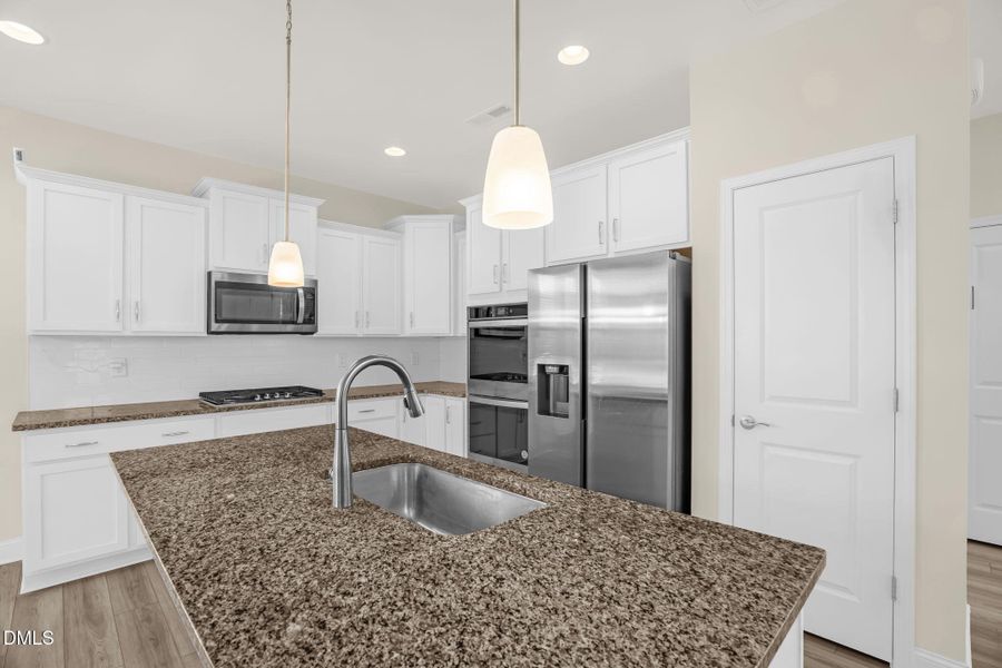 - DishwasherRefrigeratorGas CooktopGranite countertopKitchen IslandGas OvenKitchen Range