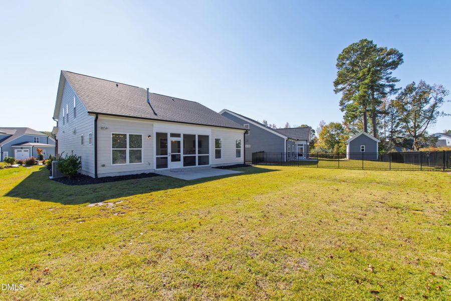 Built with energy efficiency in mind, this home features 2x6 exterior wall framing and an Energy Star-rated Bradford White AeroTherm Series hybrid water heater. Additional highlights include a generator hookup, a transferable termite bond with Quickill Pest Control in Fuquay-Varina, and a garage service door for added convenience. Outdoor living is made easy with a screened porch and a 12 by 16 concrete patio overlooking the flat, usable backyard, with a convenient gas stub nearby for grilling or outdoor entertaining.