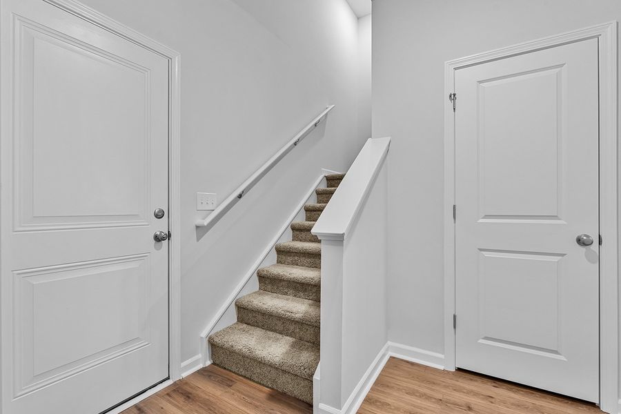 The Ford is a stunning four-bedroom, three-bath home featuring luxury vinyl plank flooring throughout the main living areas and baths. The kitchen offers beautiful quartz countertops, a gas stove, and plenty of space for meal prep, while the great room includes a cozy gas log fireplace perfect for relaxing or entertaining. This home also features a convenient main-level laundry room, covered back porch, and a spacious loft upstairs that provides additional living space. The bedrooms are comfortably carpeted, and there’s an unfinished floored storage space offering extra room for seasonal items or hobbies. A two-car garage provides even more convenience. Located in a community where yard maintenance is included in the HOA, this home allows you to enjoy a low-maintenance lifestyle with plenty of comfort and style.