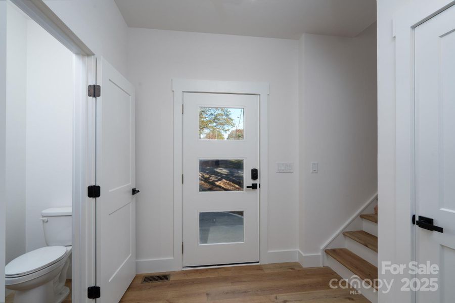 Contemporary 3BR/2.5BA home showcasing an open layout and a large kitchen, custom blue cabinets, and designer tile backsplash. Main-floor laundry for added convenience. The upper level features a spacious primary suite with a walk-in closet and beautifully tiled shower, plus two additional bedrooms and a full bath. Situated on a wooded lot with plenty of shade, this home is Impeccably finished and move-in ready