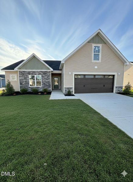 $10K BUILDER/PREFERRED LENDER CREDITS! Spring Delivery! Stunning RANCH plan with 4th bedroom/ bonus and full bath up adjacent to Baywood Golf Club. Enjoy main-level living in a tranquil surrounding with easy highway access to all amenities & Fort Bragg with NO CITY TAXES. This home features a large living room with fireplace focal point, raised ceiling and a door that provides seamless access to the rear patio. Designed for both elegance and functionality, the open kitchen overlooks the living room and features granite countertops, white shaker cabinets with gray accent island, subway tile backsplash and a suite of stainless steel appliances—including a microwave, dishwasher, and smooth top range—for added convenience. The primary suite is tucked away for privacy and showcases a vaulted ceiling and spacious WIC while the en-suite bathroom features a dual sink vanity with a quartz countertop, shaker cabinets, a walk-in shower with tile niche, separate garden tub with tile surround and a linen closet.