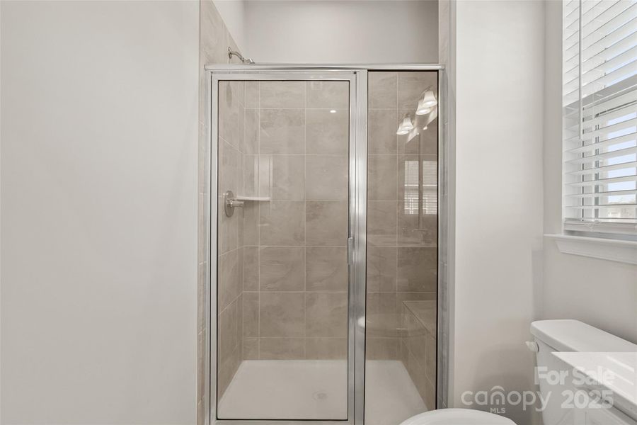 This home features quartz countertops throughout, including in the full bathrooms and kitchen, as well as an electric car charging outlet in the garage. On the main entrance level, you'll find a bedroom with a full bathroom and lots of storage.