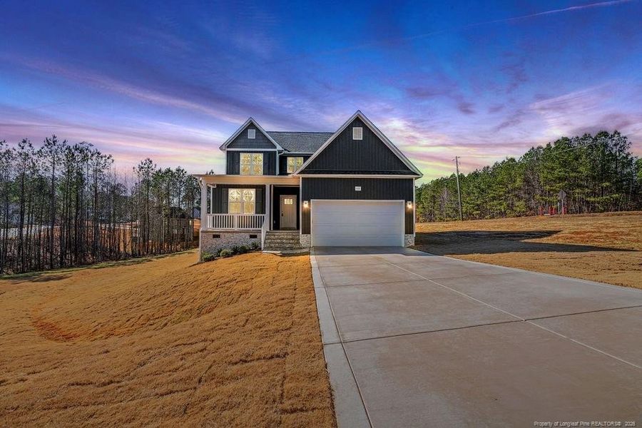 Welcome to this stunning home nestled on 0.69 acres. A charming covered front porch invites you inside, where you’ll be greeted by an elegant dining room with coffered ceilings.The L-shaped kitchen is a chef’s delight, featuring stainless steel appliances and granite countertops, seamlessly flowing into the great room with a cozy fireplace—perfect for gatherings.The Owner’s suite is conveniently located on the main floor, boasting a large walk-in shower, dual sinks, a spacious walk-in closet, and a private water closet.Upstairs, you’ll find:Two guest bedroomsLaundry roomOffice/bonus roomExpansive loft ideal for relaxation or entertainmentStep outside to enjoy peaceful evenings on the back deck, overlooking your private yard.Builder is offering $10,000 SPCC and blindsPreferred lender Marcela Melo (Alpha Mortgage) 910 336 0848 / marcela.melo@alphamortgageadvantage.com offering up to 1%