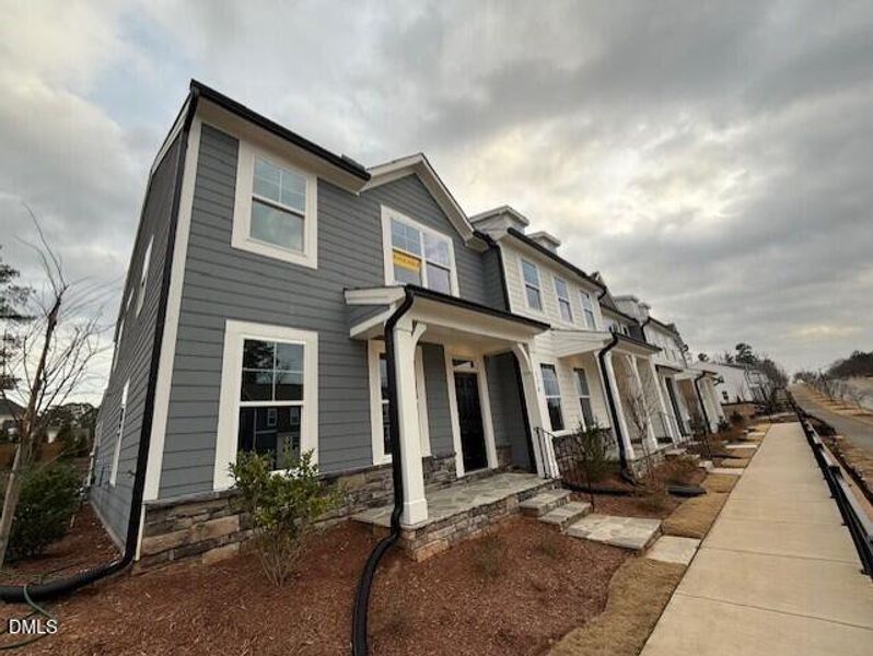Check out The Denton! This stunning end unit two-story townhome offers three bedrooms, two-and-a-half baths, a convenient one-car rear-load garage and covered porch. This home offers buffet area with cabinets. Features an open-concept first floor features a spacious family room, a kitchen with an island, and a dedicated dining area, and a tech drop zone. Upstairs, you'll find all three bedrooms, including a spacious primary suite, and laundry room.