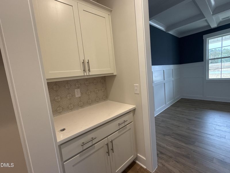 - Walk-In ClosetCrown MoldingFoyerCoffered CeilingPantryBuilt-in BookshelvesDouble Vanity