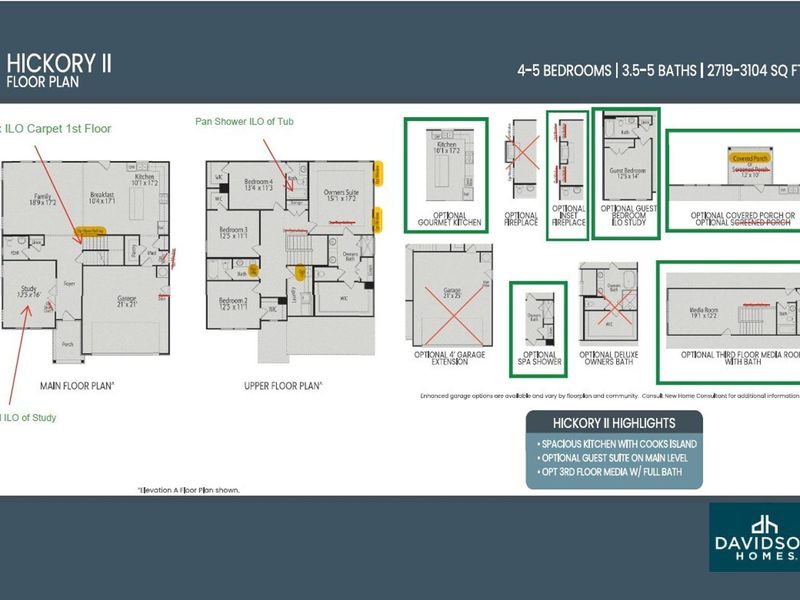 The Hickory II C welcomes you with expansive windows flooding the open floor plan with natural light. The gourmet kitchen boasts abundant counter space and seamlessly overlooks the breakfast and living rooms, perfect for entertaining. A versatile first floor study/guest suite offer flexibility and comfort.