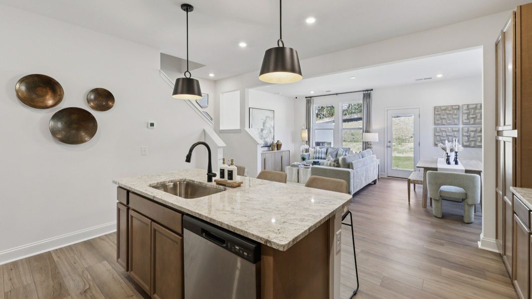 Welcome to The Litchfield plan by premier builder DRB Homes. Enjoy bright, open-concept living in this thoughtfully designed craftsman-style townhome. The spacious kitchen features a large center island that flows into the family and breakfast rooms, perfect for entertaining and everyday living. Upstairs, you'll find three bedrooms, two full baths, and conveniently located laundry on the same floor. The large primary suite includes a walk-in closet and a dual-vanity. This new townhome includes a 1-car garage.