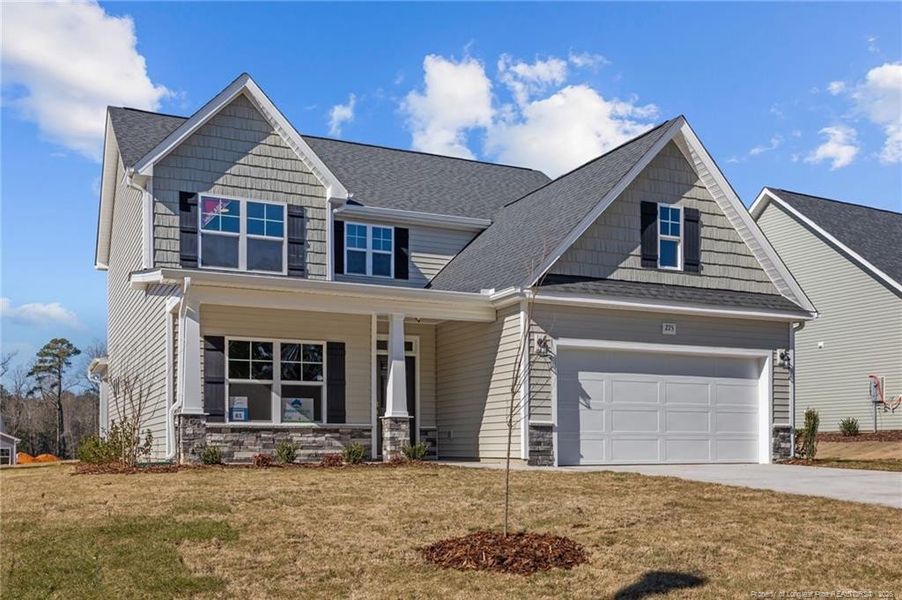 Upon entering The Camelia Home the foyer showcases two-piece crown molding, wainscoting, a flex room, and garage access. Off the foyer, a mudroom offers stacked washer/dryer hookups and access to a half-bath. The kitchen boasts granite countertops in ''Giallo Ornamental'', a sink overlooking the great room, bar seating, white shaker cabinets, a pantry, white subway tile backsplash, and stainless steel appliances including a microwave, dishwasher, and smooth top range. The open great room features an electric fireplace with black granite surround and access to a rear covered porch. Off the great room, the spacious first-floor primary suite offers a tray ceiling with crown molding and an en-suite bathroom with a white dual sink vanity, ''Simply White'' quartz countertop, private water closet, linen closet, walk-in shower, and a spacious walk-in closet. Upstairs offers a spacious loft with a linen closet, three bedrooms, a second laundry room, and a full bathroom. The exterior boasts low-maintenance vinyl siding with shake accents, stone skirt, dimensional roof shingles, a spacious front porch, and smart keypad entry with a SW ''Iron Ore'' front door. Other highlights include a two-car garage, Energy Plus certification, fiber optic internet availability, and a 1-2-10 builder in-house warranty. Long Point Reserve combines small-town charm with modern convenience, offering amenities such as a swimming pool, clubhouse, proposed dog park, and easy access to Southern Pines, Fort Bragg, and Raleigh.Welcome to Long Point Reserve, located just off US-1, this community offers a quiet countryside setting with convenient access to everything you need. Featuring a mix of townhomes and single-family homes starting from the $300s, this neighborhood is thoughtfully planned into the backdrop of the serene town. Rural Setting with Community Comforts Surrounded by the natural beauty of Moore County.