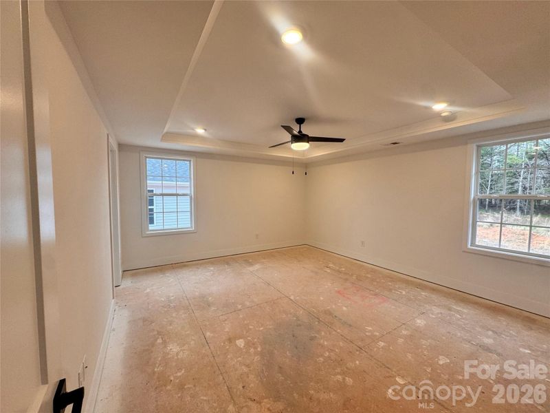 Brand-new 3-bedroom, 2.5-bath home with 1,643 sq. ft. of beautifully designed living space! This modern two-story layout features an open-concept main floor with a spacious family room with a fireplace for you to cozy up with your morning coffee, a spacious dining area, and a bright kitchen complete with white cabinets, granite countertops, stainless steel appliances, and an electric range. A stylish Arctic White 3” x 6” tile backsplash compliments the Moonlight granite! Beautiful and durable Mohawk laminate wood flooring enhance the clean, contemporary feel. Upstairs, you’ll find a generous loft, perfect for a home office or second living area. The primary suite includes an oversized walk-in closet and an additional spacious closet off the bathroom. This stunning primary bathroom features 4” x 16” Arctic White gloss tile with a decorative Listello. Two additional bedrooms, a full bath, and a convenient laundry room complete the upper level. Enjoy outdoor living on the covered patio overlooking your backyard. A 2-car garage offers plenty of storage and parking. This move-in ready new construction home blends comfort, style, and function—schedule your tour today and don't miss out this opportunity to own a beautiful home in the sought-after new phase of Village at Parkside!