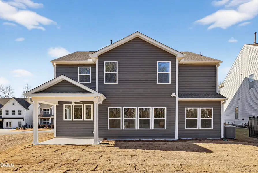 Quick Move-In Opportunity! This beautifully designed 5BR / 3 BA Riley with guest bedroom on main offers a modern, open layout and thoughtful upgrades throughout. The main level features a spacious Great Room that flows into the Dining area and a chef-inspired Kitchen with stainless steel appliances, including refrigerator and gas range, dense marble counters, upgraded cabinetry, and a large island. A rear covered porch extends the living space—perfect for entertaining or relaxing outdoors.