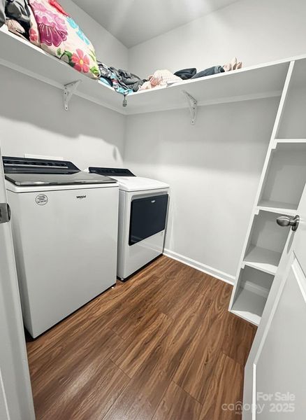 Inside, the home is move-in ready with quartz countertops, luxury vinyl plank flooring, under-cabinet lighting, and stylish pendant lighting that add both functionality and modern appeal. The living room is highlighted by a custom decorative built-in accent wall, creating an inviting focal point for everyday living and entertaining. Additional features include a built-in closet organization system and a secondary room converted into a dedicated walk-in closet or flexible storage space, offering exceptional storage and versatility.