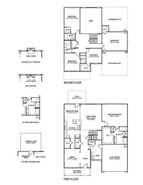 Imagine celebrating the holidays in this beautiful home. The 3320 floorplan invites you to experience a lifestyle of style and functionality. This two-story home is designed to maximize your space and create an inviting atmosphere. Upon entering, you will find a direct flow from the foyer to the main living area. The spacious family room with an open ceiling to the second level allows a perfect place to enjoy gatherings with friends and relatives. The open-concept design of the first floor allows easy access to the well-appointed kitchen with formal dining room and a casual breakfast nook. The kitchen includes features such as ample cabinet space and a walk-in pantry for storage, as well as a large countertop and top-of-the-line appliances. The primary suite is also located on the main level for added privacy and convenience. The ensuite bathroom offers a luxurious feel with double vanity, 5' shower with tile walls, and a generous walk-in closet. The upstairs holds the remaining four bedrooms and two baths. The versatility of these rooms allows for customization, whether you desire a home office, a playroom, or a media room to cater to your specific needs. In the backyard, there is a large covered lanai that can serve as a place to host outdoor gatherings or simply enjoy the weather. With thoughtful architecture, impeccable craftsmanship, and high-end finishes, the 3320 floorplan has everything you could want to elevate your living experience.