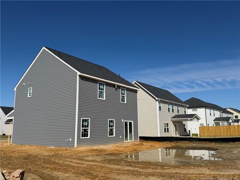 Discover The Onslow CC1885 by Caviness and Cates, a thoughtfully designed 3 bedroom, 2.5 bath, two story home on a desirable corner lot. The upgraded Embark Exterior Package Lake Norman and Interior Package Clean Slate create a clean, modern look throughout. The main level offers LVP flooring, 9' tall ceilings, a welcoming foyer with a powder room, and a spacious great room that flows into the kitchen and dining area. The kitchen offers NexGen Shaker cabinets, Luna Pearl granite countertops, a pantry, and counter seating, with sliding door access to the 10.0' X 10.0' patio. Upstairs, the primary suite includes two walk in closets, dual sinks, and a private shower and toilet area. Two additional bedrooms, a hall bath, and laundry room complete the upstairs layout. Enjoy a two car garage with an extra 6.0' X 16.0' storage area attached. The neighborhood is a private gated community with sidewalks, dog park, walking trail, and a picnic/grill area. Additional highlights include Energy Plus certification, fiber optic internet readiness, and a 1-2-10 builder warranty.