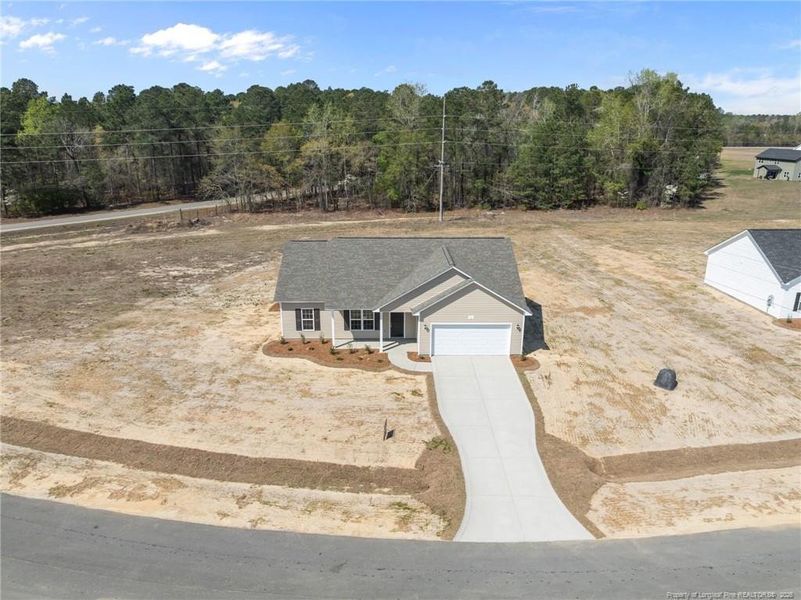 Welcome to McRainey Farm, where brand new ranch homes are coming together in a quiet country setting with spacious lots and room to breathe. These homes offer open-concept living with laminate flooring in the main living areas and a kitchen designed for everyday use, featuring granite countertops, tile backsplash, and a stainless steel side-by-side refrigerator included in the appliance package. Blinds will be installed prior to completion, making the move-in process easier. Each home is set on a large lot and features a split floorplan along with a covered back porch, a comfortable place to slow down and enjoy the setting. While the neighborhood feels peaceful, shopping, dining, and everyday conveniences are still close by. Located minutes from I-95 and a short drive to the new I-295 extension, McRainey Farm offers a convenient commute to Fort Bragg and easy access to surrounding areas. The area continues to grow with ongoing development and infrastructure improvements, adding to its long-term appeal. High-speed fiber internet is available throughout the community, supporting today’s work-from-home and connected lifestyles. Homes are currently under construction with anticipated completion in mid-February. Schedule a visit to see the homes and experience the neighborhood for yourself, and ask about available builder and lender incentives.