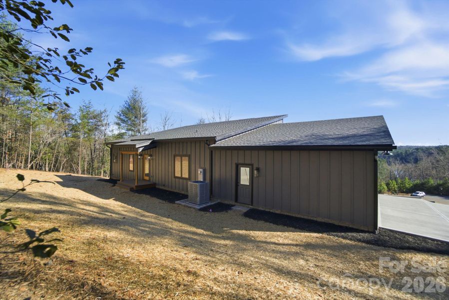 A spacious 520 sq ft elevated main-level deck, paired with an equally sized concrete patio below for the walkout lower level, offers fresh mountain air and generous space to relax or entertain. Outdoor living is effortless with sliding doors that create seamless indoor/outdoor flow, set among quiet wooded surroundings with seasonal lake views and glimpses of the Blue Ridge Mountains.