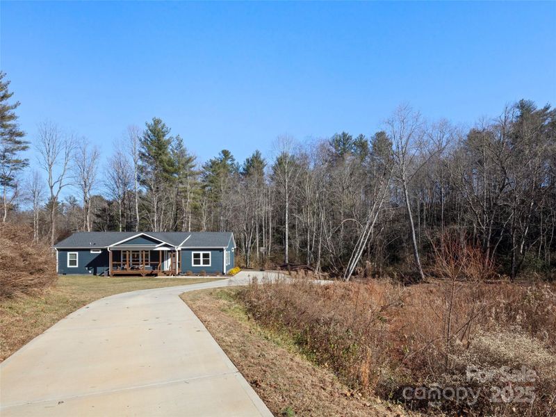 Rare opportunity on over four acres of flat land with no restrictions at the end of a quiet cul-de-sac! 263 Moss Hill offers 3 bedrooms, 2 baths, and just under 2,000 sq. ft. of bright, open living space. The inviting front porch leads to a large great room, dining area, and classic kitchen. The primary suite features a walk-in closet and en suite bath with a large tiled shower. Two additional bedrooms, a full bath, and a laundry room with back porch access complete the interior. Outside, enjoy a large back porch, small fenced area, expansive yard, mature woods, and a serene creek running throughout the property. Just minutes to Asheville Regional Airport, downtown Hendersonville, and shopping, this home perfectly combines privacy, space, and convenience.
