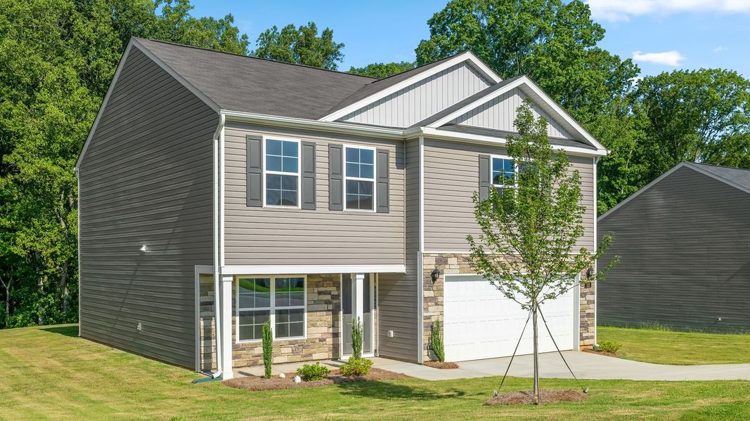 The Penwell is a two-story floor plan at Preston Oaks located in King, NC, It offers 4 bedrooms, 2.5 bathrooms, 2,164 sq. ft., and a 2-car garage. Upon entry, you'll find an inviting foyer leading to a flex room, powder room, and an open living area that connects seamlessly with the kitchen and breakfast area. The kitchen includes a walk-in pantry, stainless steel appliances, and a functional island perfect for cooking and entertaining. Upstairs, the primary bedroom offers a spacious walk-in closet and an en-suite bathroom with a walk-in shower, dual vanity, and water closet. Three additional bedrooms share a full bathroom. The conveniently located laundry room completes the second floor. The Penwell combines thoughtful design, spaciousness, and modern conveniences—schedule your tour today!