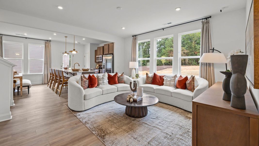 Inside, discover open-concept living designed for modern lifestyles. The spacious family room serves as the home's centerpiece—perfect for movie nights, game days, or simply spreading out and relaxing. The efficient kitchen flows seamlessly into the living space, making it easy to stay connected with family and guests. Durable Luxury Vinyl Plank flooring flows throughout the main level, combining style with easy maintenance.