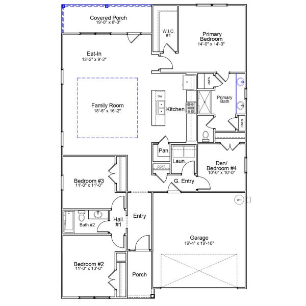 The Gwinnett is a single-story home featuring four bedrooms and two full bathrooms. The private primary suite is tucked away from the secondary bedrooms and features a spacious walk-in closet, a five-foot walk-in shower, dual linen closets, and a separate water closet. At the heart of the home, the open-concept living area showcases a trayed-ceiling great room that flows seamlessly into the eat-in area and well-appointed kitchen. The kitchen boasts a large island and a walk-in pantry, making it ideal for everyday living and entertaining. Extend your living space outdoors with a fantastic covered porch, perfect for relaxing or hosting guests.