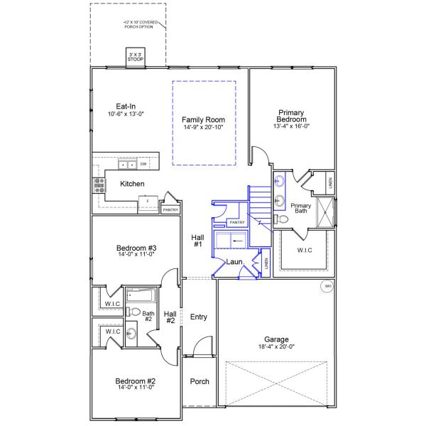 This one-and-a-half-story Durham is a four-bedroom, three-bathroom home with an open floor plan. The kitchen, complete with two pantries, and an eat-in area open to the trayed ceiling great room. The primary bedroom is split from the secondary bedrooms and features a large walk-in closet and an oversized linen closet. Both secondary bedrooms also feature walk-in closets. The laundry room is conveniently located near the garage entry, where there is plenty of storage in the linen closet. Upstairs, you will find a guest suite with a closet, a full bathroom, an additional linen closet, and walk-in attic access.