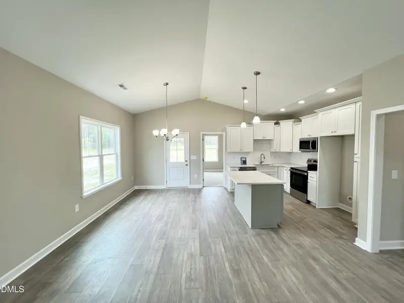 Welcome to the Rowan Plan, a thoughtfully designed home offering 1,360 square feet of stylish and functional living space with 3 bedrooms and 2 bathrooms. The open-concept layout features a spacious Family Room that flows seamlessly into a bright Dining Area and a beautifully appointed QUARTZ Island Kitchen complete with STAINLESS steel appliances, TILE backsplash, and a PANTRY for added storage.