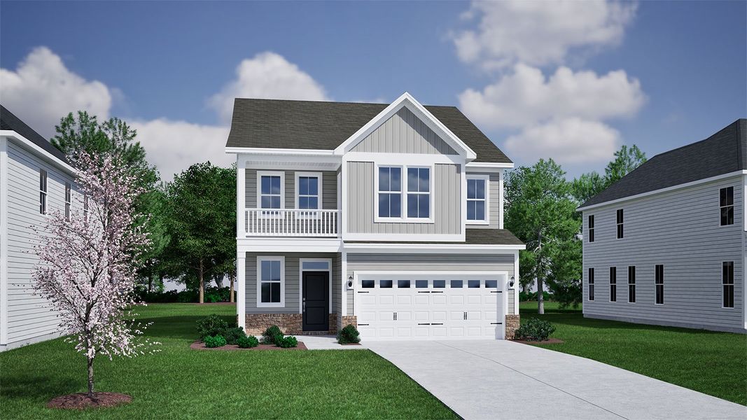 The Lacey offers exceptional flexibility with two primary bedrooms—one conveniently located on the first floor and another upstairs—ideal for multi-generational living or hosting guests. This thoughtfully designed home features spacious rooms throughout and a charming balcony, creating the perfect blend of comfort, functionality, and style.
