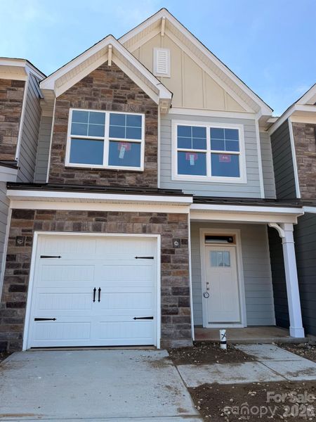 New townhomes in Harrisburg! This Ashland plan has 3 bedrooms, 2.5 baths, and more than 1,800 square feet of living space. The open main floor features Enhanced Vinyl Plank (EVP) flooring throughout. The kitchen has gray cabinets, white quartz counters, white tile backsplash, and stainless appliances, including a gas range. The kitchen opens into the dining area and family room. The composite tread stairs with metal balusters lead to the upper floor that has a loft, laundry room, two secondary bedrooms, a hall bath, and the primary suite. The primary bath has a tiled shower with a bench seat, dual-sink vanity, and a linen closet. Additional extras include a tray ceiling in the foyer and quartz counters in all baths. This home has a rear covered porch and a privacy fence panel between rear yards. Community amenities feature a dog park, playground, paved walking trail, outdoor pool & cabana.