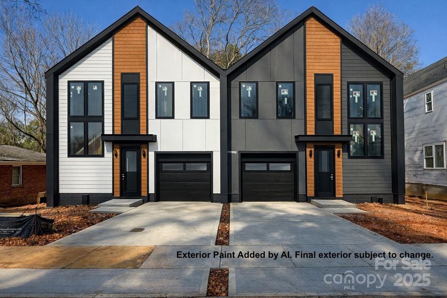 Part of the striking Crestview Duets, this brand-new home delivers modern architecture, thoughtful craftsmanship, and exceptional privacy in one of Charlotte’s fastest-evolving corridors. This 3BR/2.5BA layout offers approx. 2,300 sq ft and is anchored by a show-stopping two-story stairway with large windows pouring light throughout the home. The quartz kitchen with designer cabinetry, soft-close drawers, gold & matte-black accents, and oversized island connects beautifully to open living spaces ideal for entertaining. A dedicated office with glass doors, shiplap details, RevWood flooring, and a spa-level primary suite featuring a huge rainfall shower create a home that feels refined and substantial. Outdoors, the full-width Trex deck with privacy wall overlooks an unusually deep backyard backed by a Tree Save buffer, offering peaceful wooded views and rare seclusion for townhome living. Set in a quiet residential neighborhood with room to breathe, just steps from the Gold Line, walkable to the park, 5 minutes to Uptown, and 11 minutes to the airport. No HOA. EV-ready garage. Estimated completion mid-February.