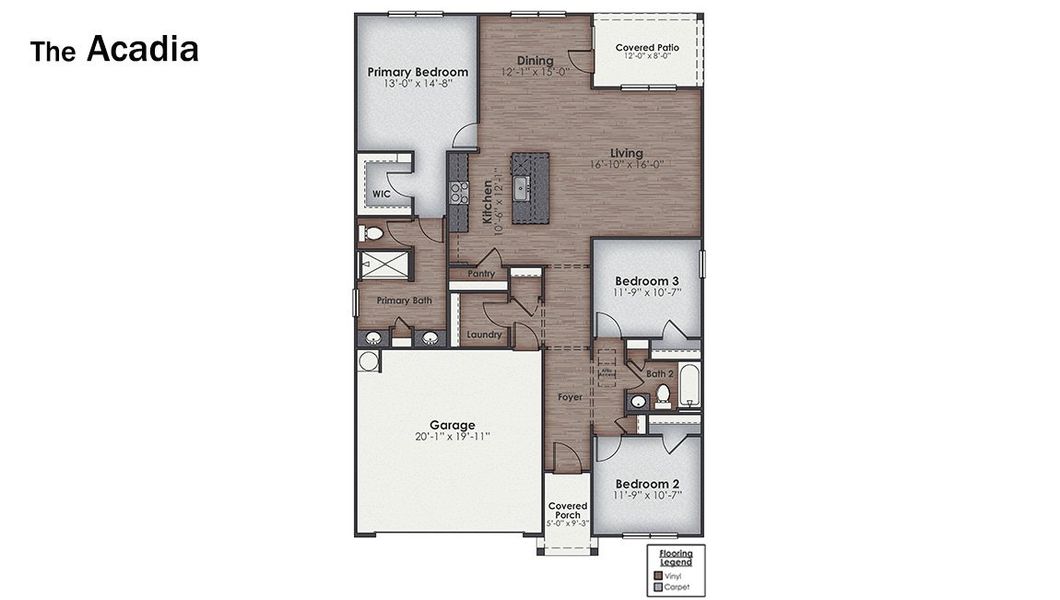The Acadia is one of our ranch style plans available to build in our Rolling Hills community in Bolivia, NC that offers 3 bedrooms, 2 bathrooms, 1,618 of living space and a 2-car garage. 3 unique exterior elevations are available to choose between to achieve the look that best suits your preferences. This floorplan has so much to offer future homeowners!