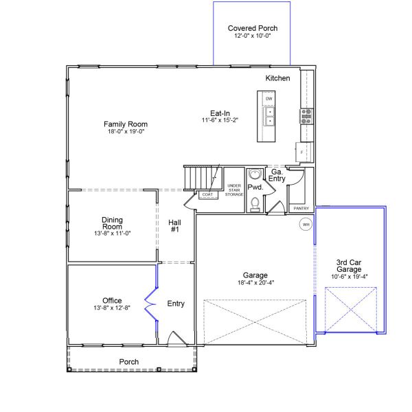 The Turner is a two-story, open-concept home offering five bedrooms and three-and-one-half baths. Just off the entry, a spacious office with French doors provides a quiet place to work or study. The great room anchors the main living area and flows seamlessly into the formal dining room, kitchen, and eat-in area—perfect for everyday living and entertaining. The kitchen features a large island, a walk-in pantry conveniently located near the garage entrance, and generous storage, including ample under-stair space. Upstairs, the primary suite includes a large walk-in closet and dual linen closets. Four additional bedrooms are also located on the second floor, along with a loft and a centrally located laundry room for added convenience.
