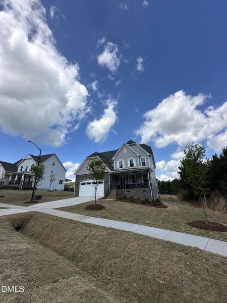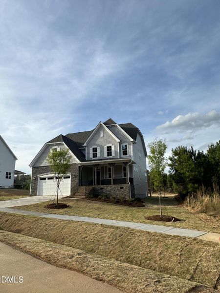 Welcome to The View, where style, space and serenity come together. European inspired two level home is 3,353 sq ft on a 0.42 acre lot with a peaceful, wooded backdrop. This thoughtfully designed Clark floor plan features 4 bedrooms, 3.5 baths and an open, flexible layout ideal for everyday living and entertaining. The first floor primary suite offers ease, comfort and privacy. Upstairs is another spacious, private suite. Both suites include spacious walk-in closets and private en-suite baths. The main level showcases a gourmet kitchen with wall oven, cooktop, range hood, pantry, energy-efficient appliances, breakfast area, formal dining room and a large central gathering space. Upstairs includes two additional bedrooms, a full bath with dual sinks and a versatile media/bonus room with potential for a fifth bedroom. Outdoor living is enhanced by a covered front porch and covered rear patio deck overlooking a pine-lined view. Finished with a paved driveway, sidewalks throughout the community and convenient access to downtown Durham, Duke, RTP, dining, shopping and parks. Photos are of a completed Clark European home and do not represent this incomplete home. Visit our Model Home at 1012 Prominence Dr, Durham, NC [The View] [Clark]