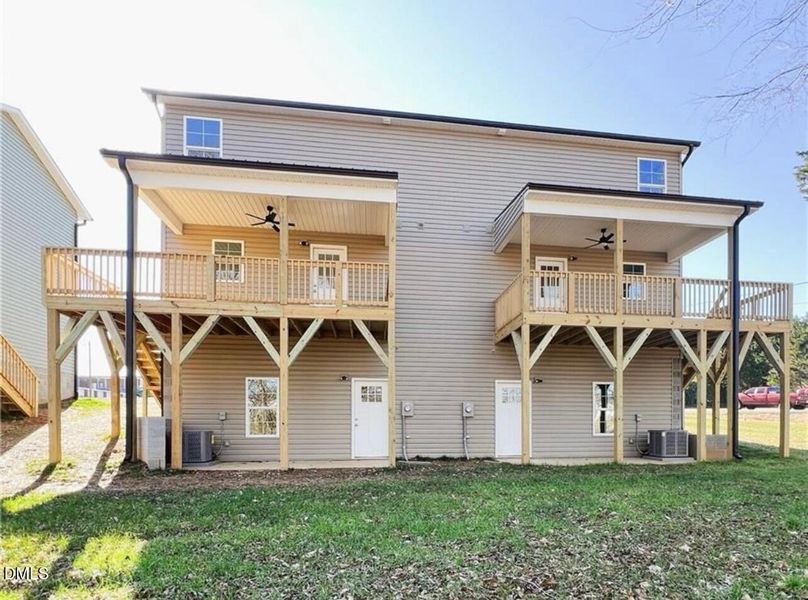 Newly constructed in 2025 featuring two duplexes on one lot for a total of four units in the heart of downtown Liberty. Each spacious unit offers 3 bedrooms, 2 bathrooms, and approximately 1,559 square feet, with no expense spared in construction or finishes. Superior build quality includes spray foam attic insulation, true 2-inch thick dense glass firewalls, and multi-zone HVAC systems with independent controls on each floor. Interiors showcase granite countertops, soft-close cabinet doors and drawers throughout, LVP flooring, composite stair systems, and ceiling fans in all bedrooms and dens. Units 109 & 111 feature main-level decks with Trex Rain Guard systems to keep the basement concrete patios dry, while units 105 & 107 offer covered upper decks protecting both the deck and lower patio from the elements. All appliances are included. The property is ideally located within walking distance to restaurants and coffee shops and is just over 4 miles from the Toyota Battery Manufacturing Plant, making it highly attractive for long-term tenants and short-term rentals alike. Three units are currently rented, with one operating as a successful Airbnb, providing immediate income and flexible investment potential. A rare opportunity to own a high-quality, turnkey multifamily asset in a rapidly growing market.