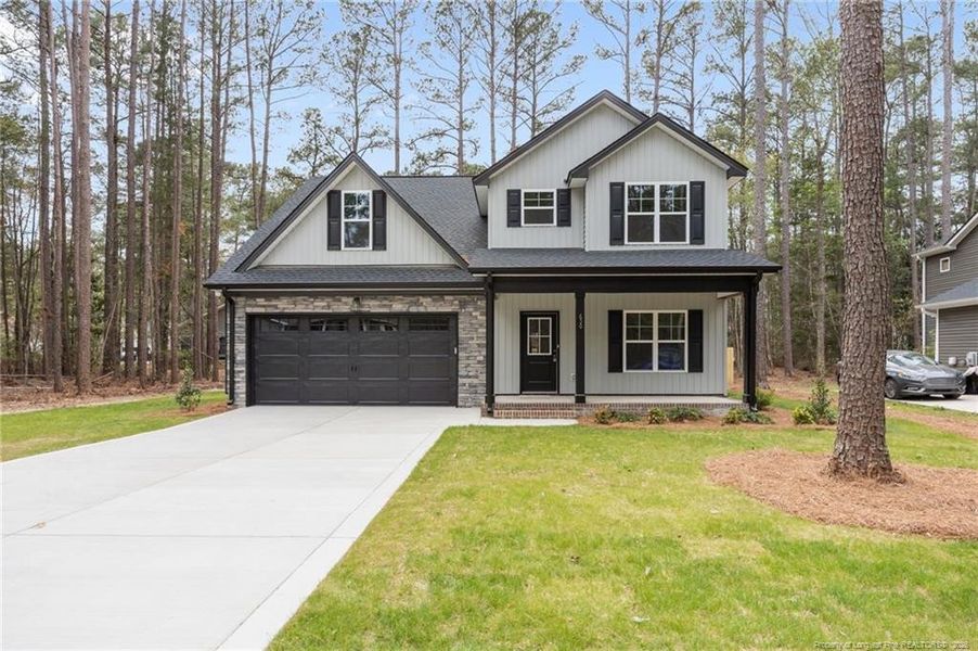 $7500 BUILDER CREDIT PLUS lender credit* with use of preferred lender! Beautiful 3 bedroom, PLUS OFFICE AND BONUS ROOM with 2.5 bath NEW CONSTRUCTION by Brown Family Builders. This stunning home is nestled in the lovely Woodlake Golf Community! Open floor plan perfect for entertaining with elevated finishes. Quartz countertops, stainless steel appliances, custom wood range hood and tile backsplash in the kitchen also boasting an island for additional countertop and storage space. The downstairs primary suite features soaking tub and large tile shower giving spa retreat vibes! Upstairs you'll find the other two bedrooms, large bonus room with a closet that could easily dub as another bedroom. The Hall bath offers dual sinks and the same high end finishes! Enjoy your morning coffee on the back patio with the seclusion of a wooden privacy fence. Woodlake gated community features a Clubhouse with pool, golf course and lake amenities, the only thing missing is you! Quick commute to Fort Bragg and Southern Pines.