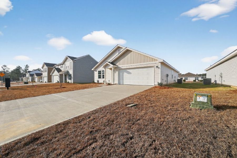 Welcome home to our Cabot plan. This thoughtfully designed four bedroom, two bathroom home offers 1,684 square feet of functional and stylish living space. The open-concept layout seamlessly connects the spacious kitchen, dining, and living areas. The kitchen features an abundance of white shaker-style cabinets, beautiful quartz countertops and stainless steel appliances. The primary suite offers a true retreat with a private bath including dual sinks and a large walk in closet. Three additional bedrooms provide plenty of space for family, guests, or a home office. Step out from the dining area onto a covered back porch, perfect for relaxing mornings or evening get togethers. With modern finishes, quality craftsmanship, and a functional layout, this home is waiting for you!