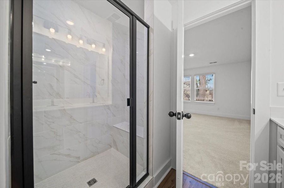 Step inside this beautifully designed home featuring an open-concept layout perfect for everyday living and entertaining. The heart of the home is the stunning kitchen with a 9-foot center island, seamlessly flowing into the bright family room and cozy breakfast area—ideal for gatherings or quiet mornings. Other features of the kitchen include soft white cabinetry, Quartz countertops, tiled backsplash and stainless steel appliances including an electric range/oven and refrigerator. Up the Oak staircase you’ll find three generously sized bedrooms, two full bathrooms, and a convenient laundry room with washer/dryer included. The spacious Primary suite offers a large walk-in closet and a private bath with dual vanities and tiled shower with seat and glass door for a touch of luxury. Smart home technology, energy-efficient features,and window blinds are included throughout. Exterior highlights include a private patio, a 1-car garage, and a two-car parking pad.