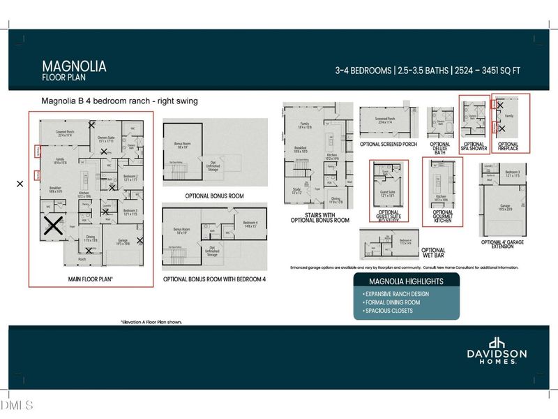 NEW CONSTRUCTION - Davidson Homes welcomes you to the Magnolia B ranch plan. This ever-popular floorplan features over 2500 sq feet of one story living! Formal Dining room is perfect for the special occasions while the gourmet kitchen with gas cooking flows with the breakfast nook and family room. Luxurious gourmet kitchen with the bells and whistles including Abundant storage in the spacious pantry too!
