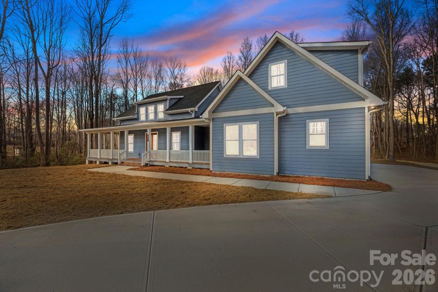 Luxury Custom Farmhouse Spec by Woodstone Communities sitting on 2.80 acres. NO HOA, as well as NO CC&Rs. The gorgeous Cypress model is a 1.5-Story ranch with a bonus room upstairs offering approximately 3,045 sq ft with 3 bedrooms and 2.5 bathrooms, designed with upscale finishes and a thoughtful layout. The open chef’s kitchen is built for entertaining, includes a butler’s pantry and grocery door from the garage. It features custom cabinetry, upgraded quartz countertops throughout, gourmet Forno gas range and appliances. This opens to your living room area that features a gas fireplace, vaulted ceilings and a 12’ sliding patio door leading to your 1,300 sq ft wrap around porch with Trex decking allowing for indoor/outdoor entertainment. The primary suite offers a huge bedroom, spacious walk-in closet with custom built-ins and dresser drawers, and a spa-inspired bath with soaking tub and custom tile work. Additional highlights include beautiful engineered hardwood, tile and carpet flooring, custom wood shelving throughout, abundant storage, and unfinished bonus walkout attic space. Exterior features Hardie siding for lasting curb appeal. Includes a 2-car garage, sealed crawlspace foundation equipped with a dehumidifier. Video tour: https://listings.lighthousevisuals.com/videos/019c80f7-4730-73e3-a908-08b952bcb8a0
