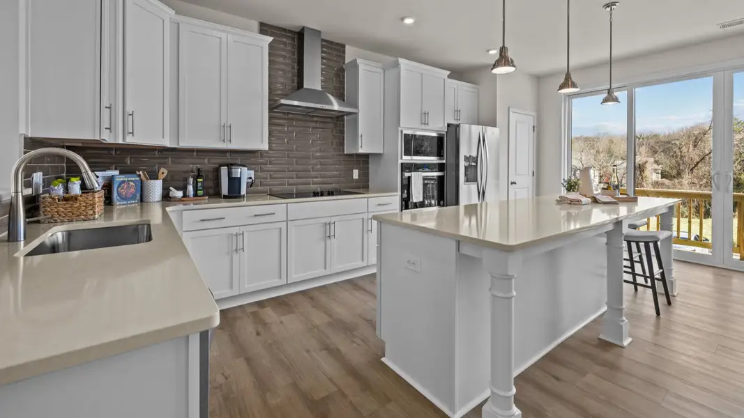 Seamless Indoor-Outdoor Living – Living area features a modern layout with spacious family room adjacent to the notable kitchen and breakfast room with dual doors opening to a spacious sitting deck.