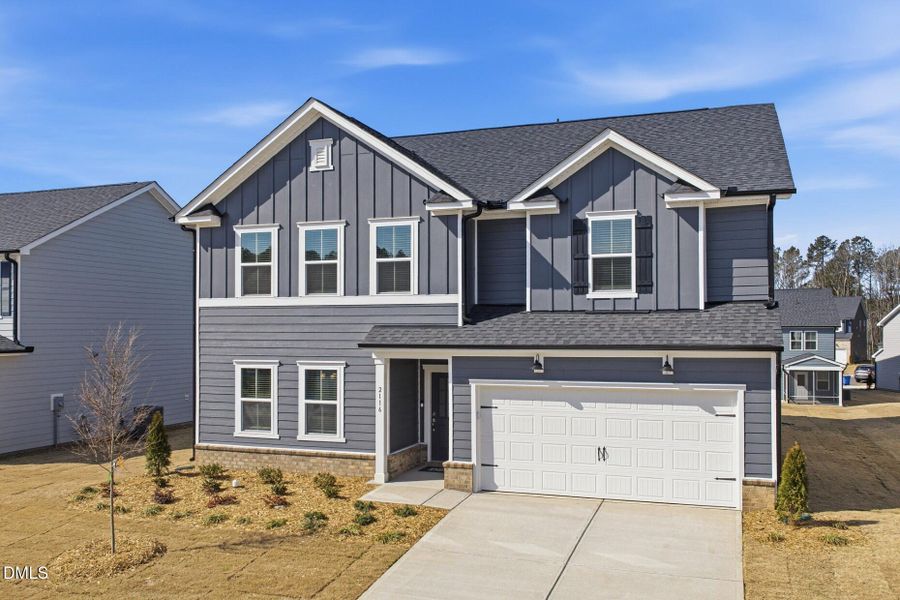 You'll find ample space in the Mitchell new home design with a large Owner's Suite, formal dining room, upstairs loft, and downstairs guest suite. The upstairs has 4 spacious bedrooms and a loft ideal for movie nights! Enjoy this spacious homesite with a serene wooded view. Modern & clean finishes throughout, featuring stone gray cabinets and granite countertops that complement the open & spacious layout. HOA includes Spectrum cable and internet.