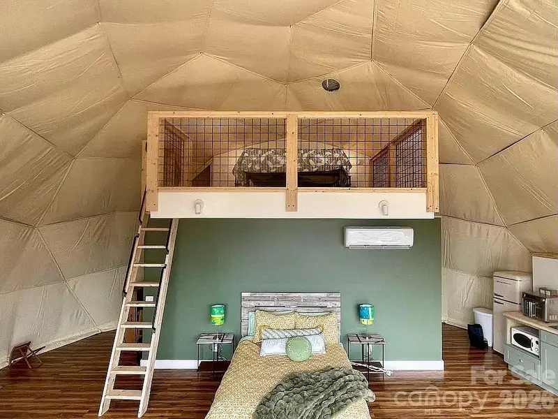 Geodesic luxury dome great for Airbnb. Has two queen beds, full bath with shower, kitchen, hot tub and out door fire pit. Is being sold completely furnished.