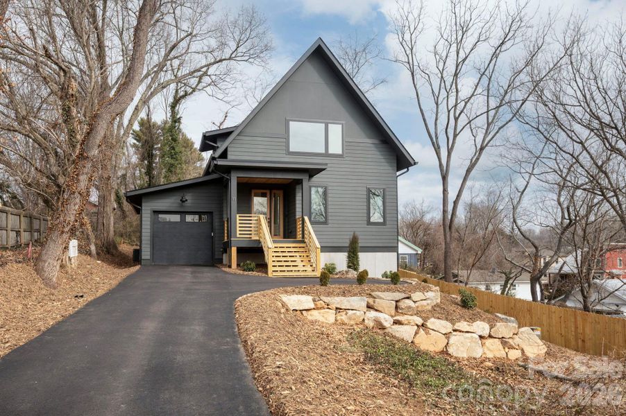 Brand-new Arts & Crafts home by JAG Construction—proudly GreenBuilt and Energy Star certified—blends modern style, comfort, and sustainability in the heart of West Asheville. Set on a private, landscaped lot with beautiful short-range mountain views, this home is perfect for entertaining or relaxing outdoors. Inside, oversized windows fill the open floor plan with natural light. The living room features a sleek, eco-friendly electric fireplace with a custom wood surround, while the chef’s kitchen shines with quartz countertops, stainless steel appliances, a large island, and contemporary finishes that flow seamlessly into the dining and living areas. The main-level primary suite offers a clerestory window, a custom walk-in closet, and a spa-like bath with a double quartz vanity and a tiled walk-in shower. Upstairs are two additional bedrooms and a full bath with a double vanity. The daylight basement adds a spacious living area and a guest bedroom suite. Enjoy a covered front porch, sunny rear deck, and a location just minutes from downtown Asheville and Haywood Road. See brochure for details.