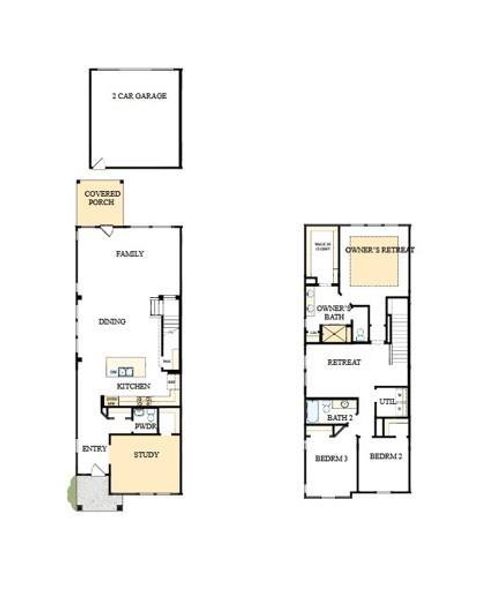 Upstairs, a bright and airy loft provides a flexible space for a media room, home office, or play area. Two additional guest bedrooms and a luxurious Owner's Retreat complete the second level. The Owner's Bath features a spa-inspired design and an expansive walk-in closet.