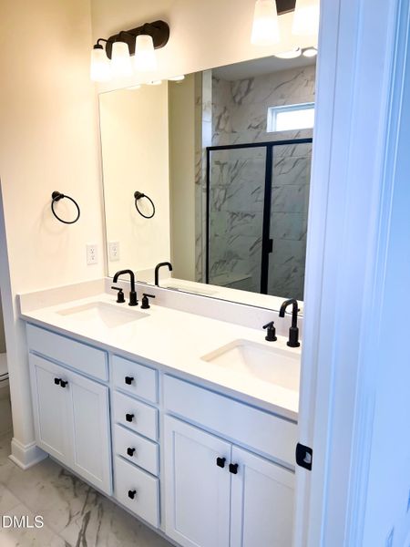 Quartz countertops and premium finishes throughout elevate the kitchen and baths.
