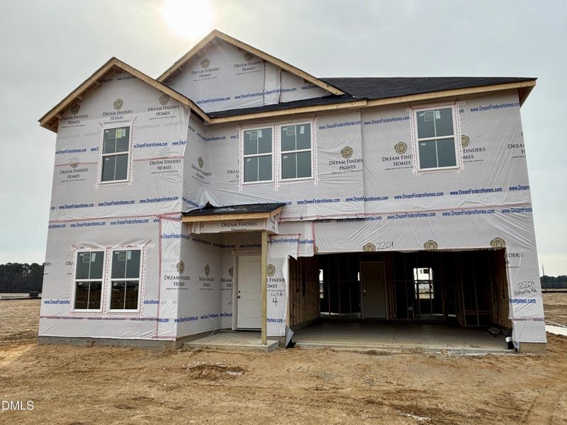 Conveniently located in the charming community of Pikesville, NC, this beautifully designed Prelude by Dream Finders Homes offers small-town ease with modern living. Residents enjoy quick access to local favorites like Nahunta Store & Grill, and less than 20 minutes to Goldsboro for shopping, dining, and retail at Berkeley Mall and Eastgate Shopping Center, making errands and outings simple and convenient. The Prelude floor plan is a spacious, thoughtfully designed two-story home featuring four bedrooms and three full bathrooms. One bedroom with a full bath is conveniently located on the main level, ideal for guests or multi-generational living. Upstairs, the primary bedroom boasts a private ensuite bath, while two additional bedrooms share a well-appointed full bathroom. A loft area offers flexible space for a second living area, media room, or play space, and a dedicated office provides a quiet, productive environment for working from home. Open living spaces are designed for both everyday life and entertaining, featuring a family room, dining area, and island kitchen with quartz countertops and a spacious corner pantry. Each bedroom includes a walk-in closet, and additional highlights include a garden tub, laminate flooring throughout main areas, tasteful bathroom accessories, and an additional parking pad. The two-car garage provides practical storage and convenience. Situated approximately 15 minutes from Seymour Johnson Air Force Base, this home offers a quick and easy commute for active duty, reservists, and civilian personnel while still providing the relaxed lifestyle of small-town living. With its generous square footage, versatile layout, and prime Pikesville location, the Prelude blends comfort, functionality, and modern style—perfect for families or military professionals seeking a move-in-ready home.